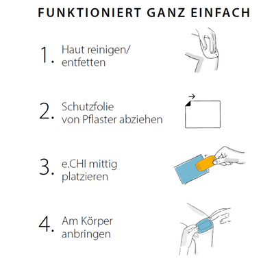 - In der Verpackung sind 10 Stück e.CHI Befestigungspflaster enthalten