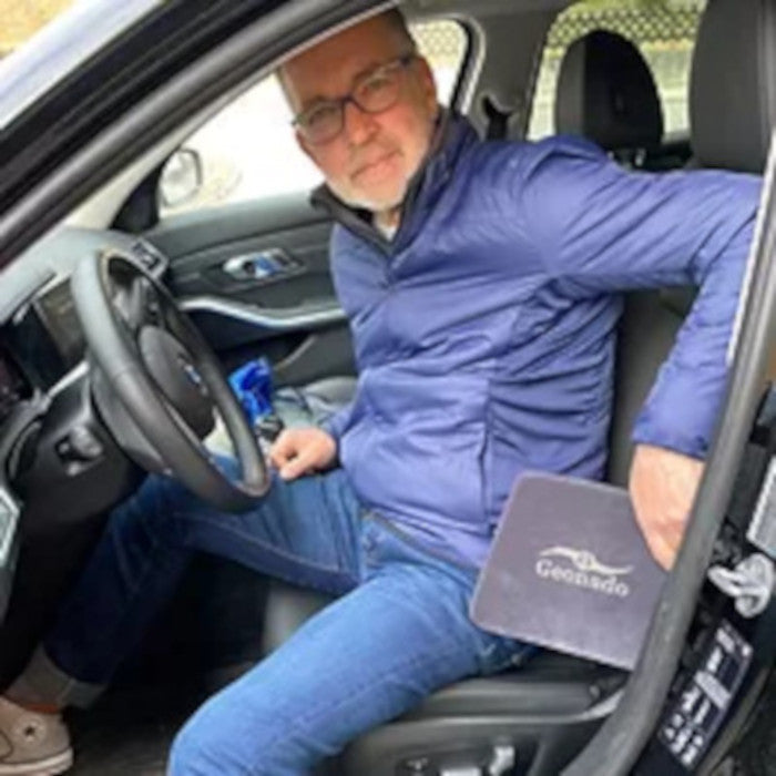 "Da ich fast täglich im Außendienst unterwegs bin, ist die Belastung durch lange Fahrten und Telefonaten sehr hoch. Auch der vorhandene Elektrosmog im Auto hat meiner Empfindung nach Einfluss auf meine Konzentration und Ausdauer. Dank dem Geonado Frequenz-Kissen fühle ich mich bei diesen Belastungen viel besser unterstützt und bin auch noch nach langen Tagen im Auto deutlich fitter und wacher."